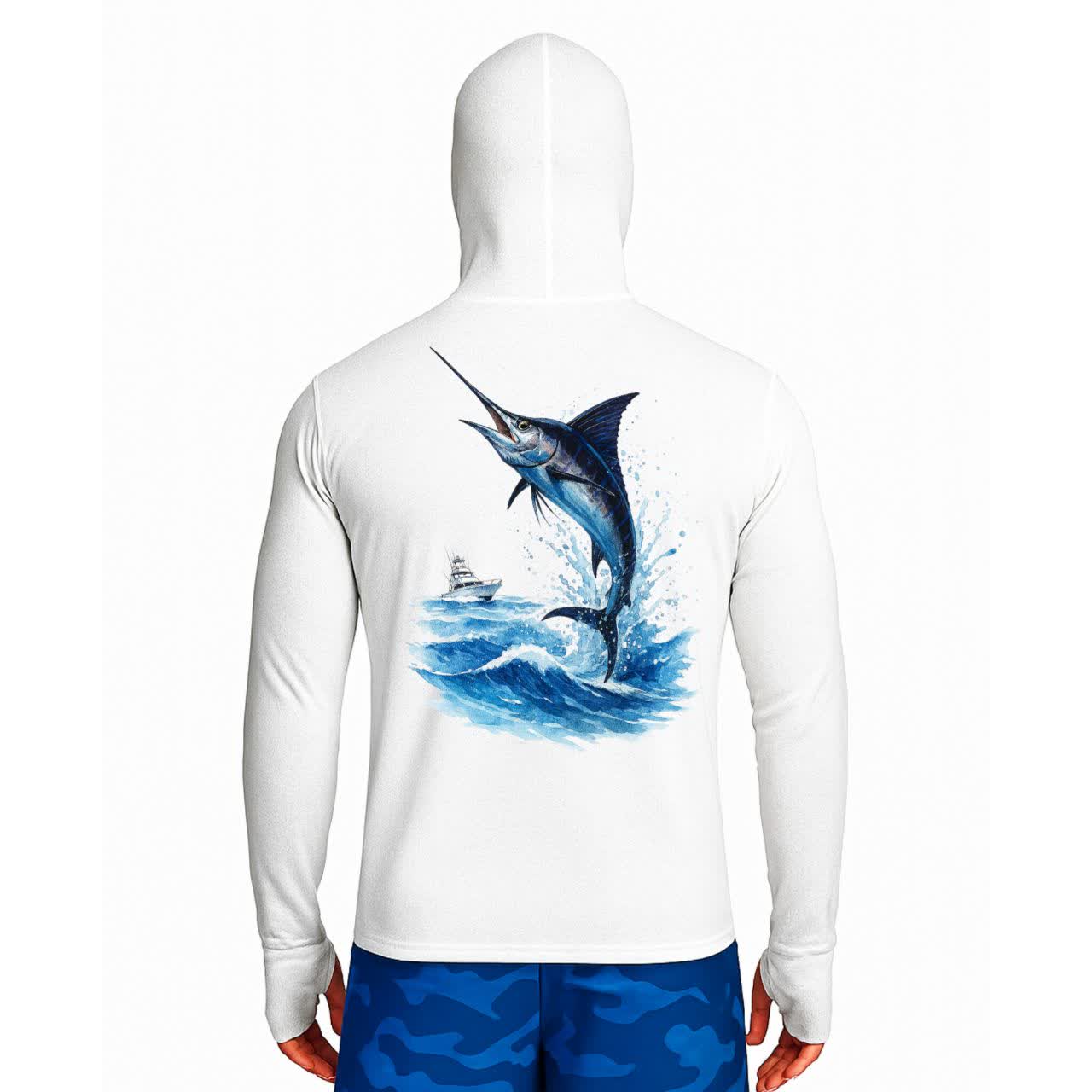 تیشرت ماهیگیری آستین بلند با کلاه و اسکارف سرخود مدل Black Marlin