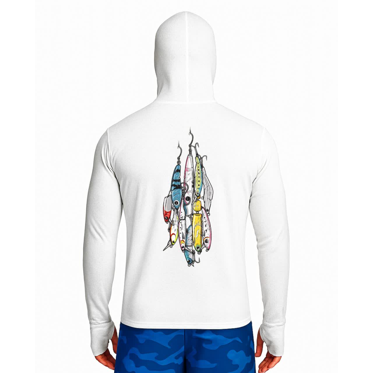 تیشرت ماهیگیری آستین بلند با کلاه و اسکارف سرخود مدل Hanging Lures