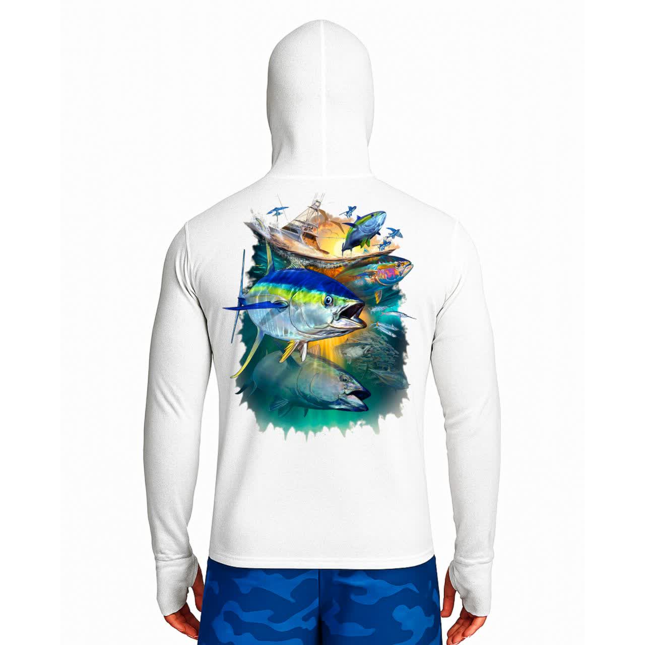 تیشرت ماهیگیری آستین بلند با کلاه و اسکارف سرخود مدل Tuna Drift