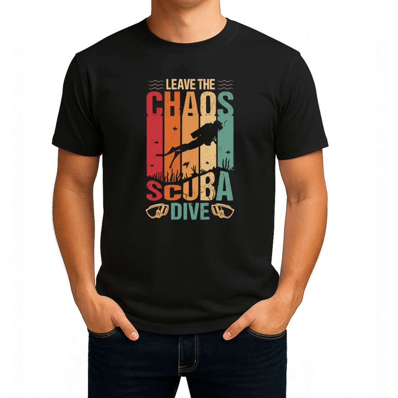 تیشرت نخی سفید و مشکی غواصی طرح Leave The Chaos