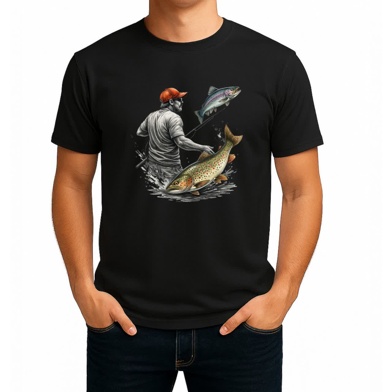 تیشرت نخی مشکی طرح Trout Fishing