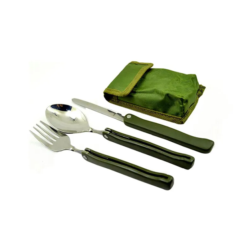 ست 3تکه فلزی سفری قاشق چنگال چاقو با کیف برزنتی