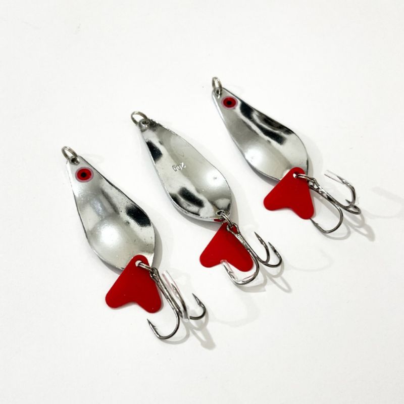 - طراحی: این قاشقک ماهیگیری با طراحی خاص و رنگ نقرهای، نور را به خوبی منعکس میکند و حرکت آن در آب شبیه به تقلای ماهیهای زخمی یا مریض است. این ویژگی باعث جذب ماهیهای شکارچی میشود.