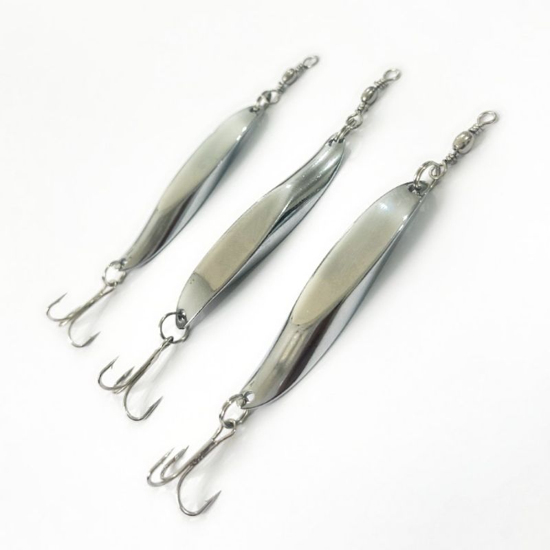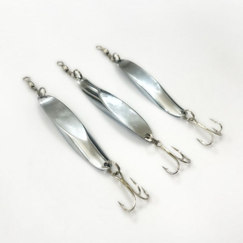 قاشقک ماهیگیری ۲۰ گرم با پشت و روی نقره ای در حین حرکت در آب موجب انعکاس نور و شبیه سازی تقلای ماهی های مریض و زخمی است که برای ماهی های شکارچی اهداف آسانی است.