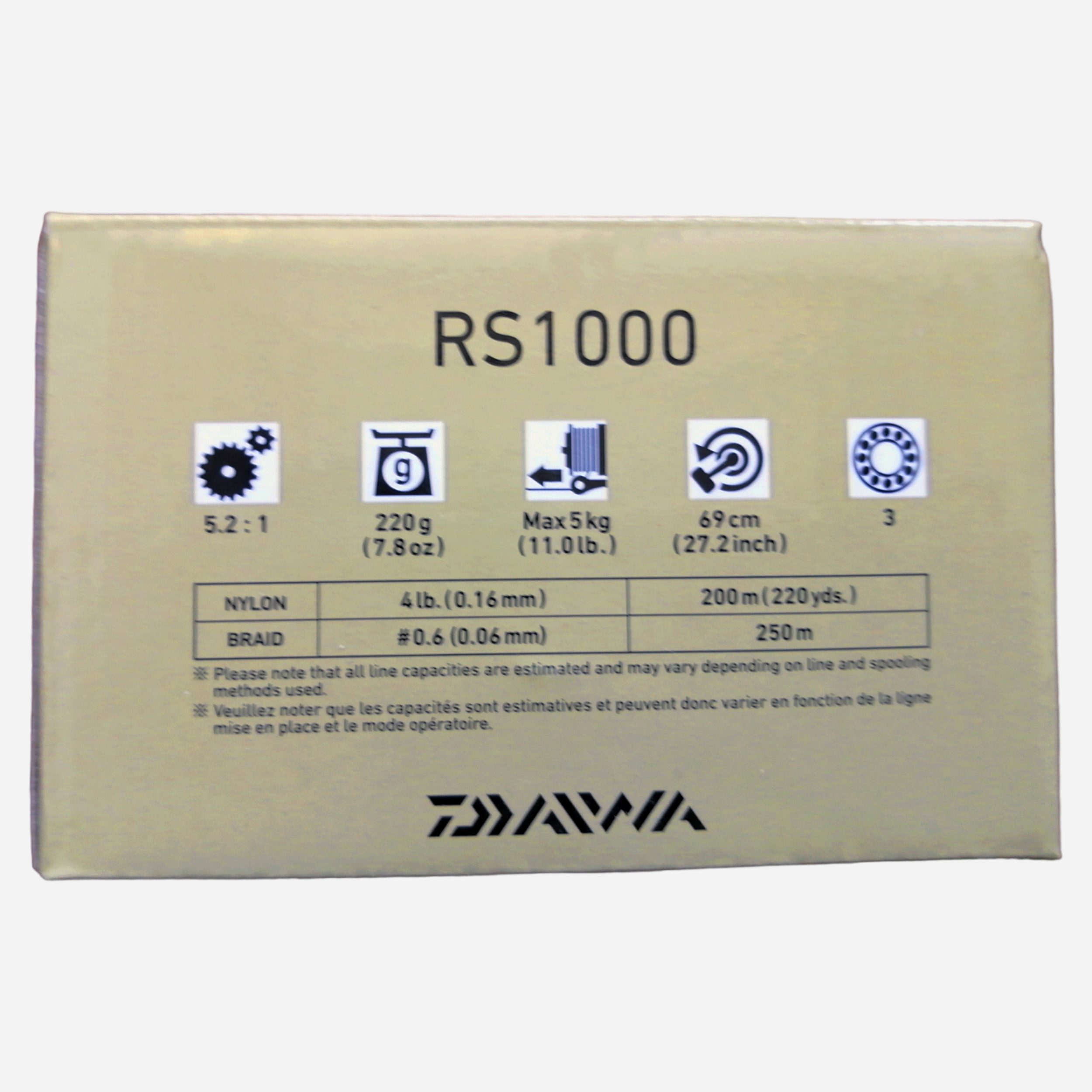 چرخ ماهیگیری DAIWA مدل RS1000 با وزن 220 گرم گزینه مناسبی برای ماهیگیری اسپینینگ آب شیرین است. اسپول فلزی، نخ گیری مناسب ، درگ بالا نسبت به سایز این چرخ ماهیگیری و کیفیت عالی همراه با قیمت اقتصادی این چرخ دایوا، آن را تبدیل به گزینه مناسبی برای ماهیگیری حرفه ای در آب شیرین نموده است.